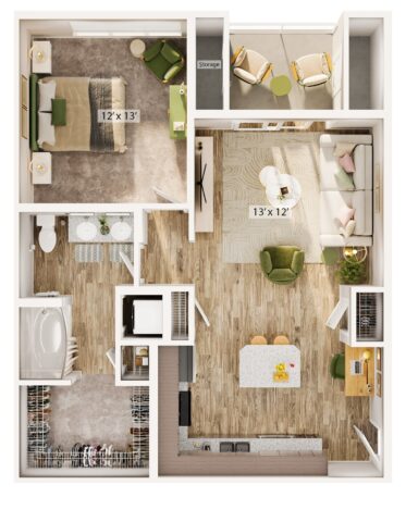 Floorplans are an artist’s rendering and may not be to scale. The landlord makes no representation or warranty as to the actual size of a unit. All square footage and dimensions are approximate, and the actual size of any unit or space may vary in dimension. The rent is not based on actual square footage in the unit and will not be adjusted if the size of the unit differs from the square footage shown. Further, actual product and specifications may vary in dimension or detail. Not all features are available in every unit. Prices and availability are subject to change. Please see a representative for details.